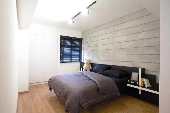 The "floating" bed is one of interior designer Kelvin's many customised designs for this apartment.