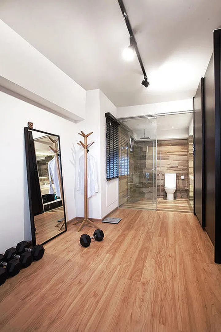The homeowners decided to adapt the en suite master bedroom into a walk-in wardrobe-cum-exercise space.