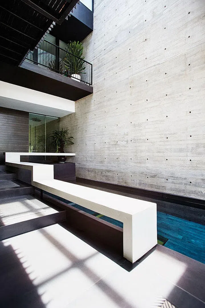 They also used timber board-formed concrete to create the structural walls of their home after being inspired by the design that they did for a client. The industrial, woodgrain finish is made through a process of patterning concrete, which softens the look and well-suited for external facade finishes.