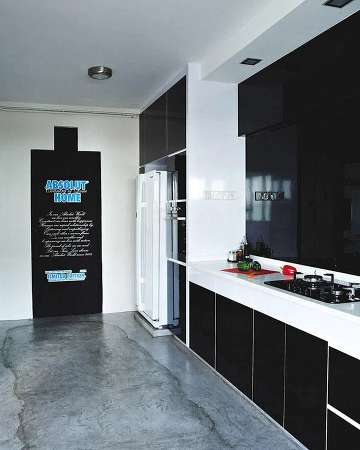The newlywed homeowners of this five-room HDB flat in Sengkang were very specific with their brief to their designer Vera Lim of Vegas Interior Design - everything had to be black and white. The idea for the austere colour scheme was to provide a clean, uncomplicated backdrop for the husband's collection of toys and Absolut vodka bottles.