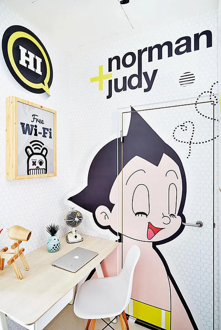 Wanting to make the most of their 506sqf, one bedroom condominium unit in Woodlands, the homeowners got the help of designer Carmen Tay of Wolf Woof. She suggested a vivid comic theme inspired by Japanese animation character Astroboy and Belgian comic strip character Tintin, to make the home more fun and cheery.