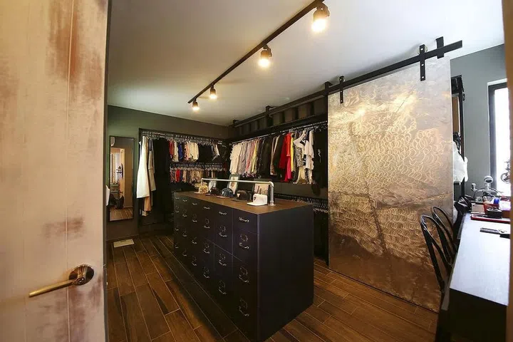 Upon entering the home, your eyes will immediately be drawn to the massive shoe cabinet which is designed as a container. The largeness of the cabinet is needed to store over 100 pairs of stilettos and sneakers.