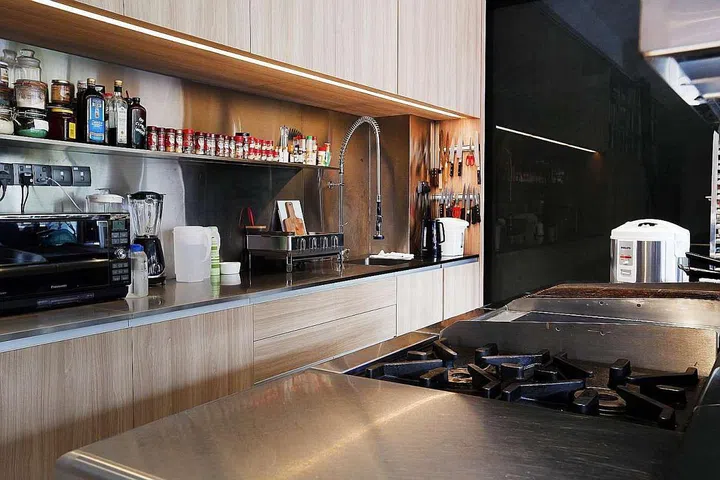 The state-of-the-art kitchen system features two kitchen islands. The "hot food" cooking station, by cooking equipment brand Waldorf, has a flat-top French grill, an industrial sunken stove and a teppanyaki grill. The other island is used for preparing food with five in-built fridges under the counter.