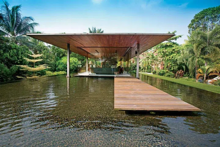 The "openness" of the rooms evokes the banglas or bungalows of India, the Thai sala or pavilion, and the kampung houses of Malacca.