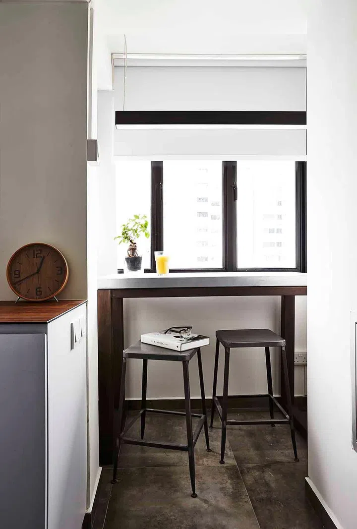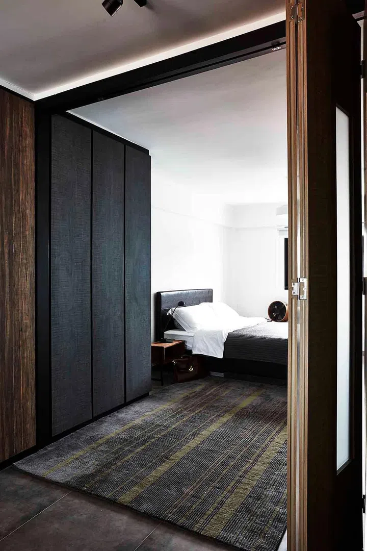 The owner of this 680sqf three-room HDB flat in Chinatown wanted the private areas of the home to be made bigger than the original layout, so the interior designer Alex Chang of ID Emboss removed as many walls as possible so as to give the visual illusion of more space.