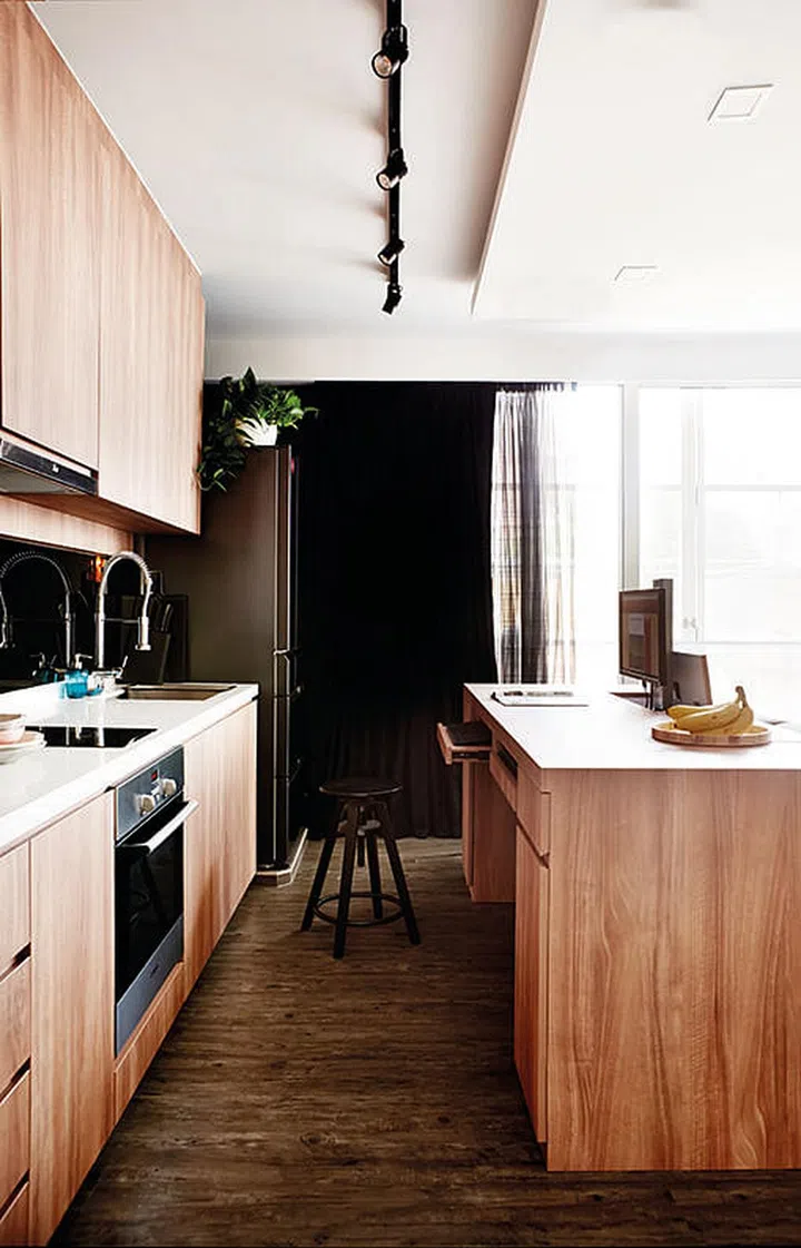 The homeowners initially wanted a Scandinavian look but their interior designer Andrew Ching from D5 Studio Image persuaded them to add more textures and utilise bolder and darker clothes.