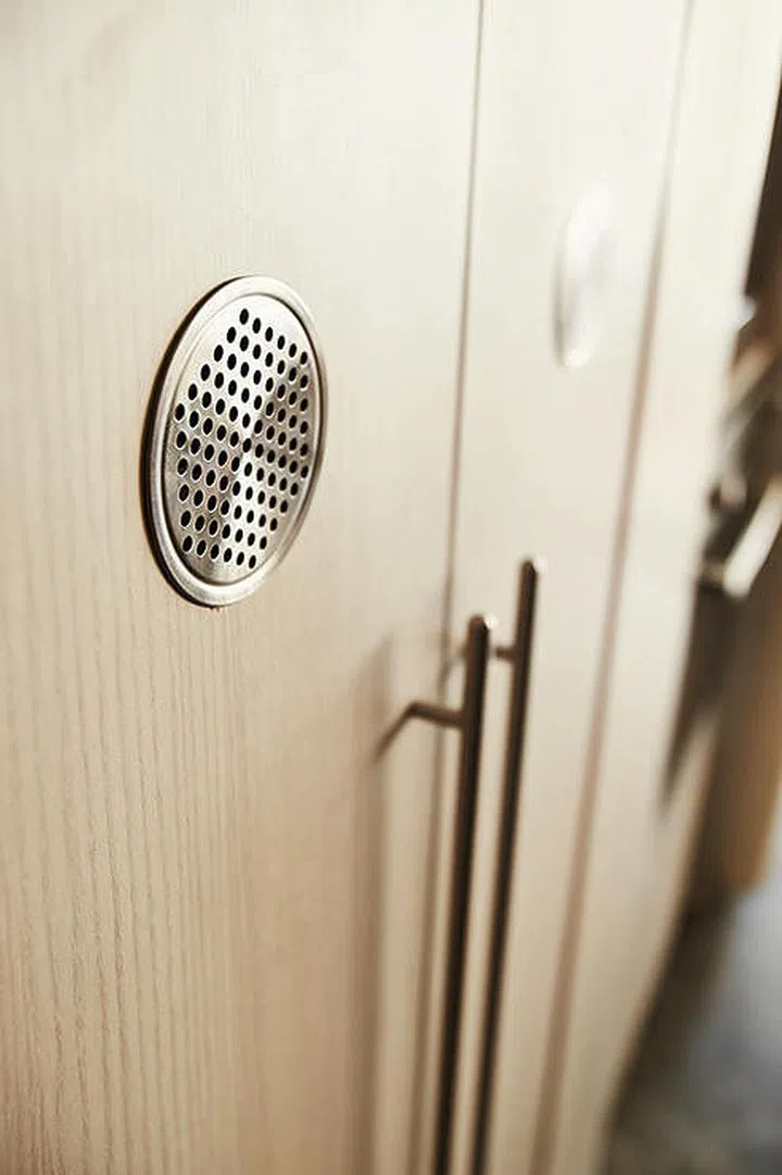 This customised cabinet has a special ventilation feature installed so that the homeowner can store appliances such as the rice cooker inside.
