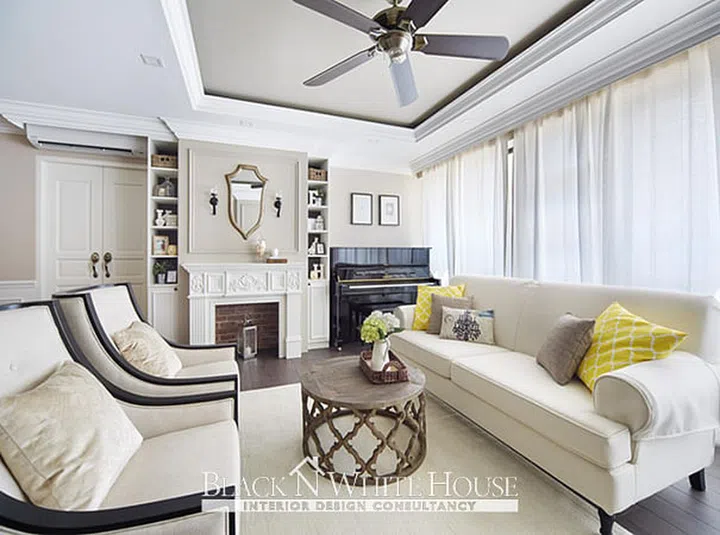 The designers from Black N White House create a modern classical look in this HDB flat by using creamy colours and warm, homey accents.