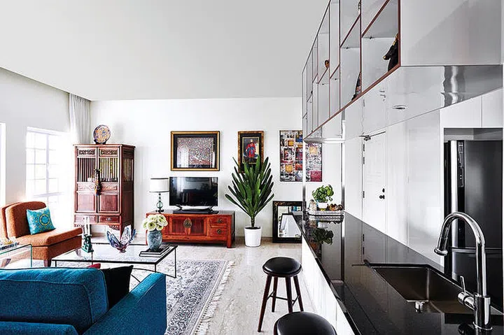 This three-bedroom condominium apartment houses many classical Chinese antiques placed against a contemporary backdrop to create a charming modern-oriental look.