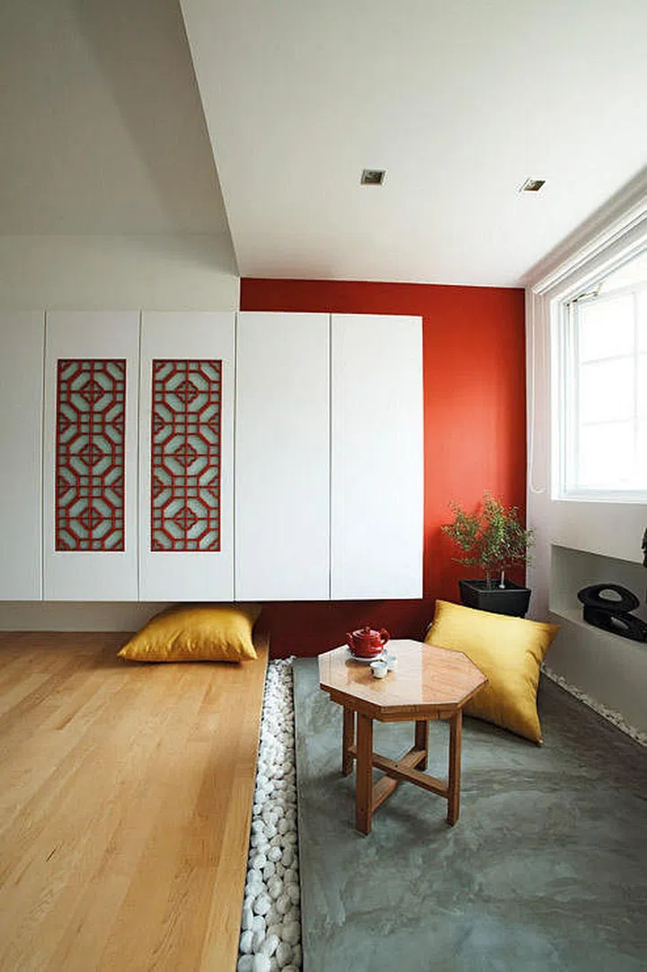 While this couple believes in feng shui, they didn't want the home to look too traditionally Chinese. The designer translated his design concept from the couple's auspicious colours and desire for something contemporary.