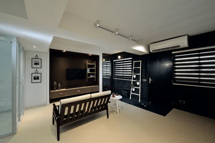 This 700sqf three-room Housing Board flat belongs to a young couple who requested a simple and spacious home. The contemporary style space, which features Scandinavian and industrial elements, is dressed in black, white, and brown – neutral tones that create a relaxing atmosphere.