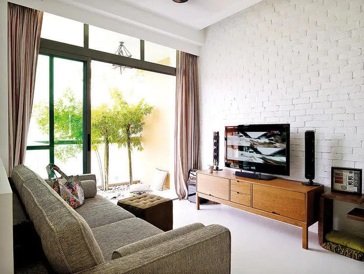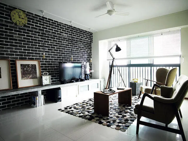 This four-room flat at Tanjong Pagar has a Scandinavian look - a casual, white-based palette of pale wood furniture and light-fused interiors. The original salmon-coloured wall was redone in a darker shade for a cooler, more industrial look and the result is a meticulously painted faux brick wall.