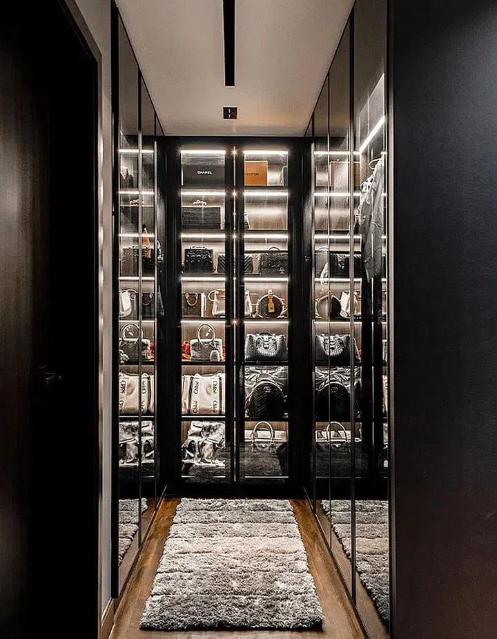 Carved out from the walk-in wardrobe is a full-length bag storage- and-display feature for the missus’ collection.