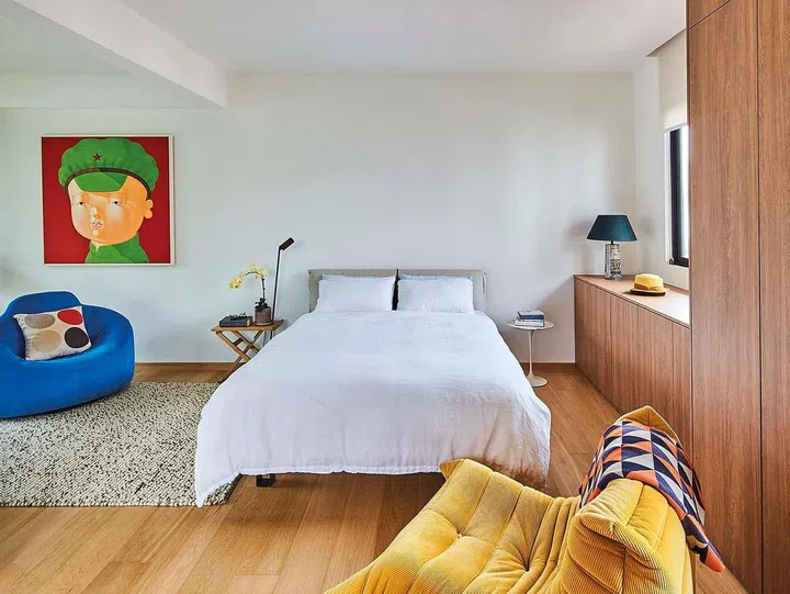 “As the client wanted a bedroom with an open floor plan, we were able to create more flexibility in the room by placing built-in wardrobes along the wall,” explains Dan, who also removed the old platform bed and walk-in wardrobe.