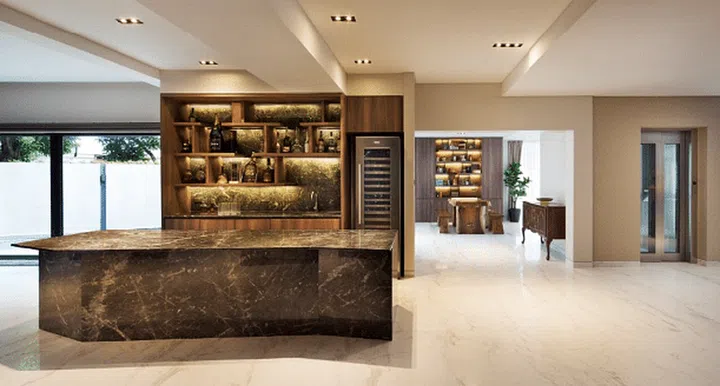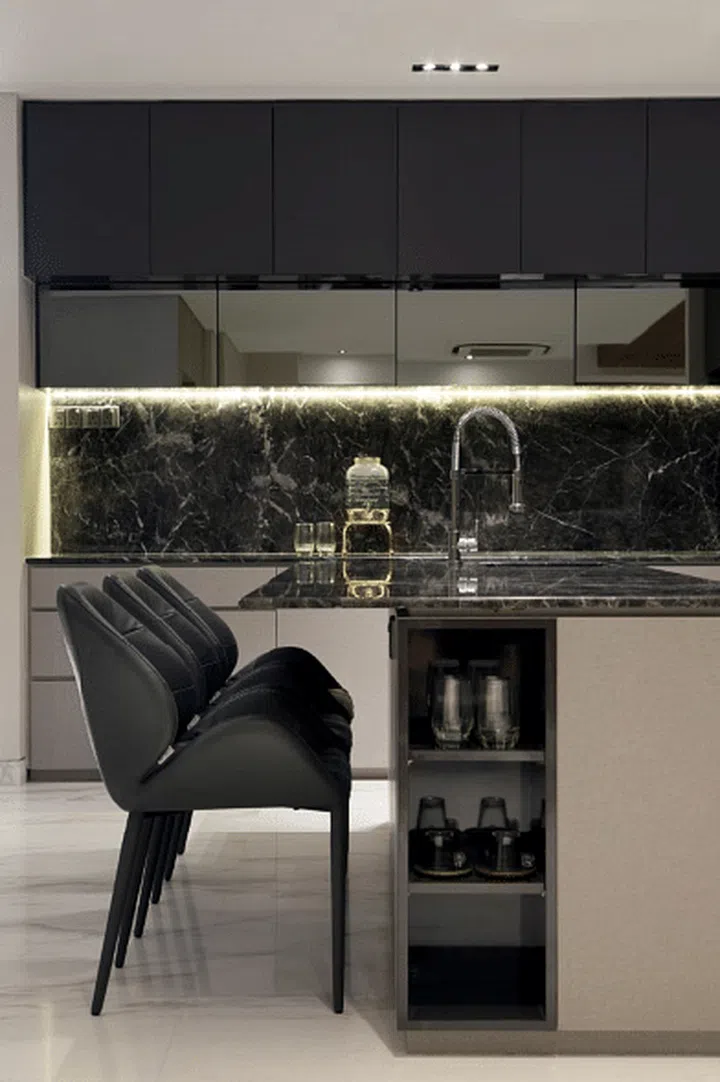 As one of the family's hobbies is to catch up over drinks, the designers created two drinking spots in between the living room and kitchen. Get a closer look in the next few photos.