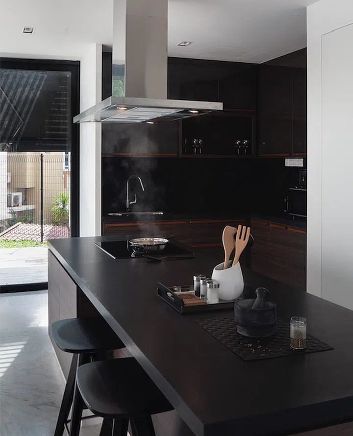 For the kitchen, design director Kelvin Bing and his team opted for dark colours to lend a homely vibe.