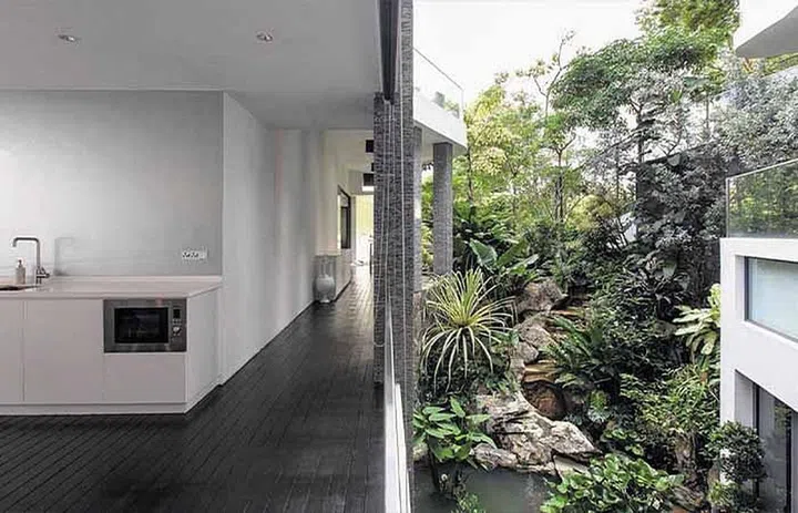 But in land scarce Singapore, sometimes it can’t be helped when there’s a monstrous house next door. Mr Taher’s solution?