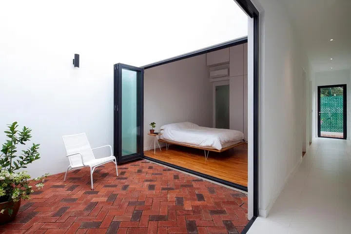 The bedroom, too, enjoys lots of natural light, as it sits next to an air well at a corner of the house. There's also lots of privacy here, so the homeowner did not require curtains or blinds.