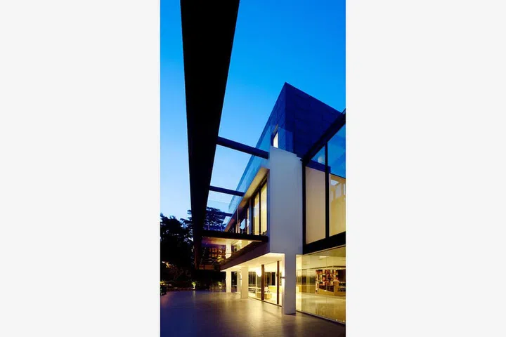 As a result, the ground level living space comprises a 26m long and 6m wide column free space with 3-sided full height glass panels exposing the user within.