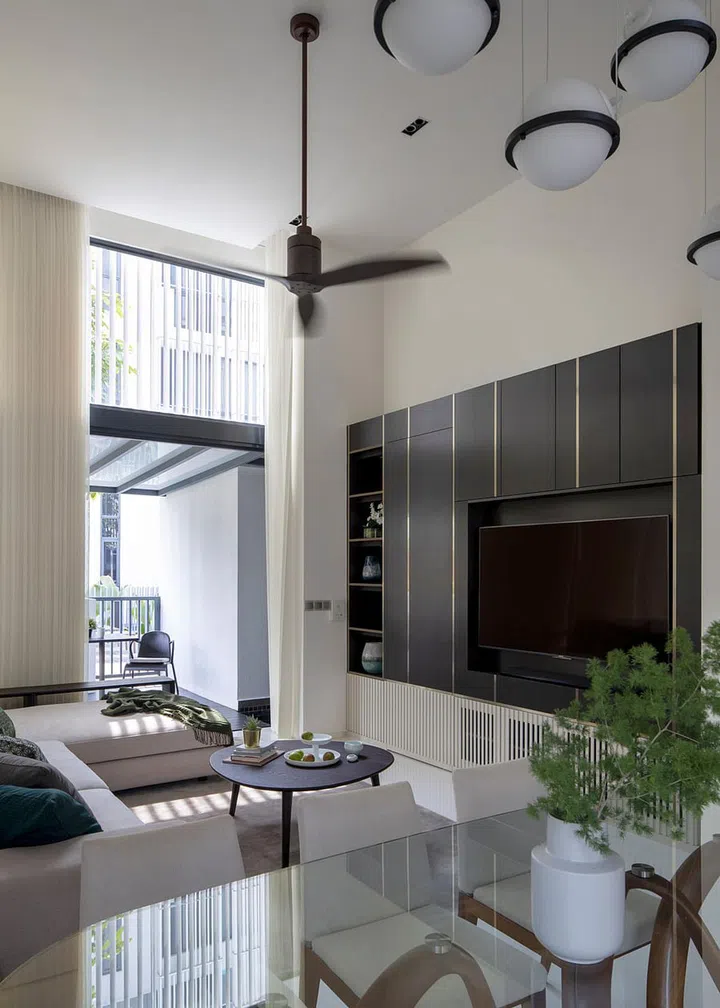 The concept of the interior highlights lines as its main design element, resulting in a bright, airy and sleek spaces that makes the most of its multi-level volume while providing ample storage.