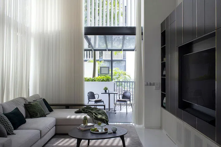Home to a family of seven, this landed house features bright open spaces with full visual connectivity.