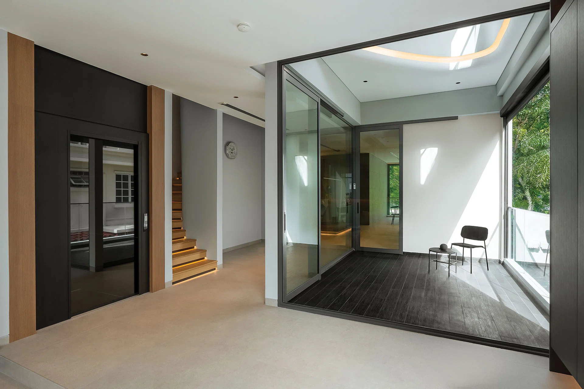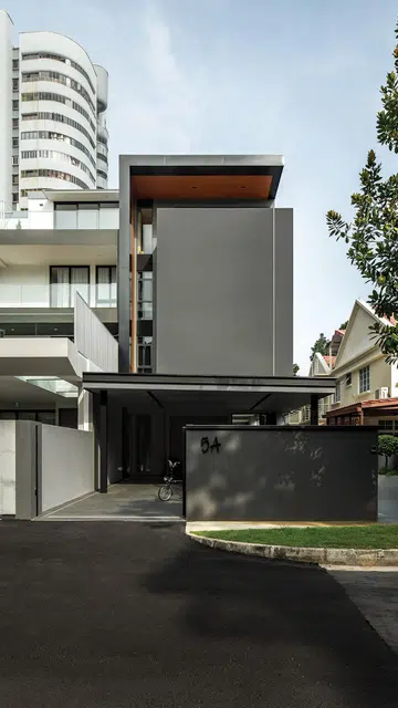 “The client is very particular about privacy,” says Tan Yue Wei, the Principal Architect and Founder of YWA. “Apart from the inverted-L-shaped cutout, everything else is pretty closed up at the front – hence the name we gave it.”