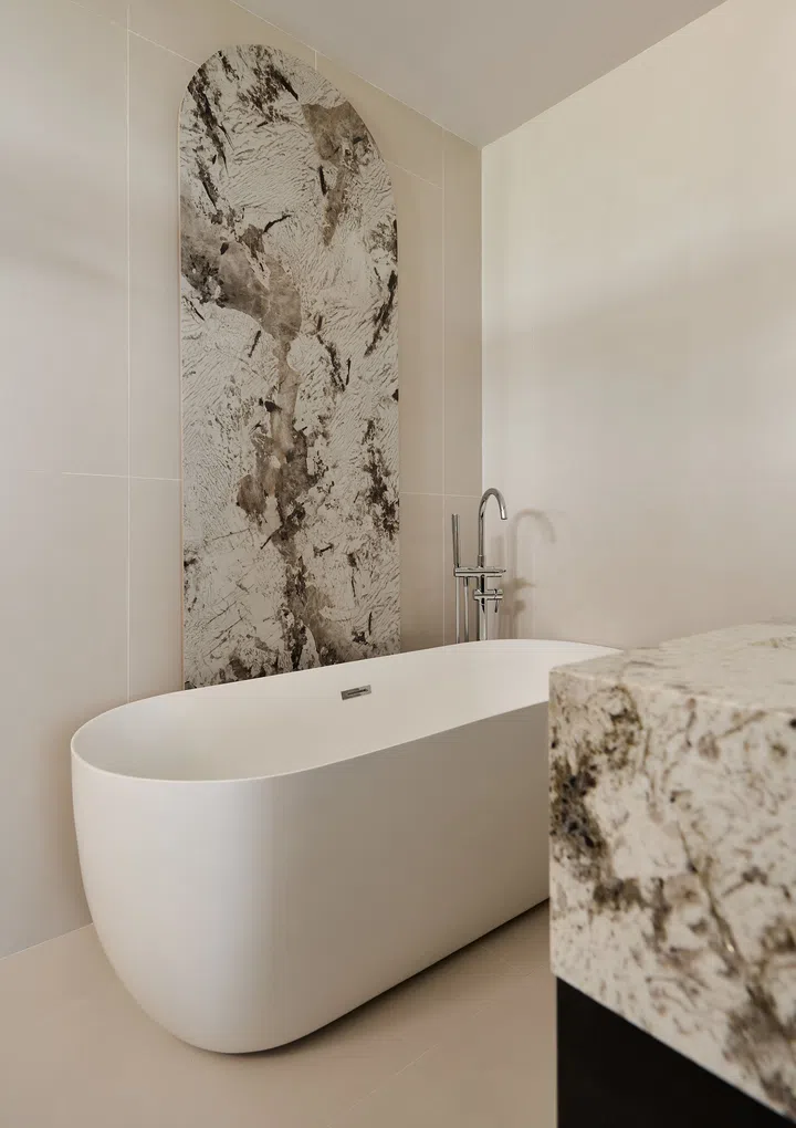A new freestanding bathtub was added to the master bathroom, together with separate shower and WC compartments and a long basin with two taps.