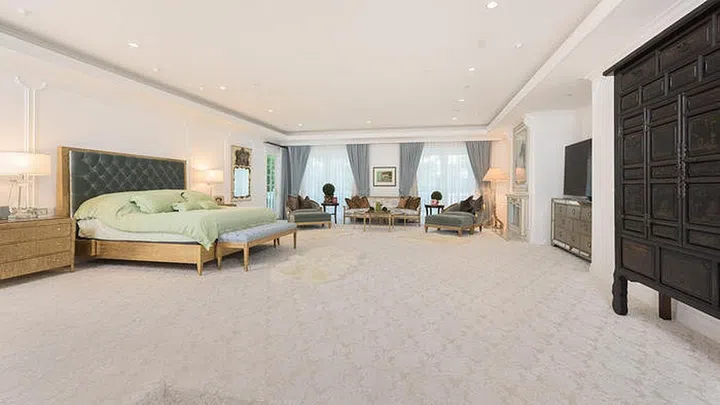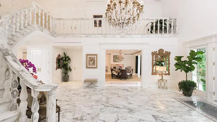 The house is said to be one of the best homes in Beverly Hills. The Greek Revival-style, 14,991sqf two-storey house is quite presidential-looking on the outside and has an opulent theme inside.