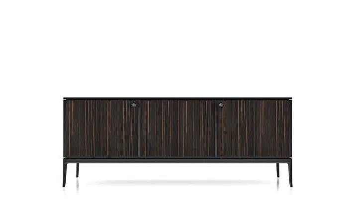 Versace’s signature Medusa, Barocco and Trésor de la Mer motifs lend a sumptuous touch to sofas and chairs, coffee tables, beds and lampshades, mirrors and cabinets. Tone-on-tone engravings, screen printing, textile treatments and pleating give elegant vibrations to the surfaces, combined with glossy finishes. Feast your eyes.