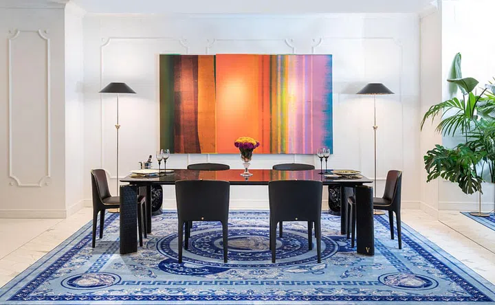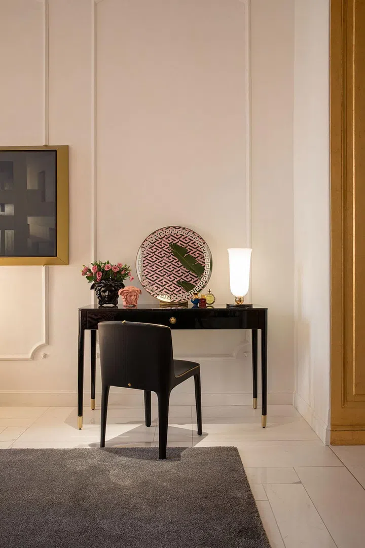 Versace Home's new collection is the brainchild of Donatella Versace and award-winning architects and furniture designer duo Roberto Palomba and Ludovica Serafini. The collection combines silk, metals, marble and solid jewel tones and Versace's signature patterns and motifs.
