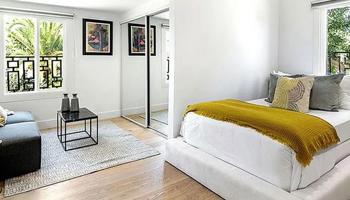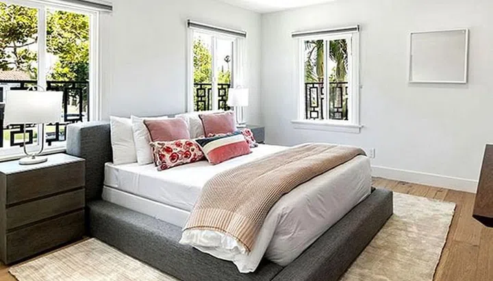 Whereas the first bedroom is clad in a coastal blue-white scheme, this one has a softer touch to it. Peachy and beige shades are the way to go.