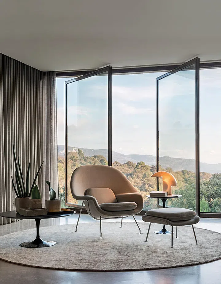 Designed by Finnish-American architect Eero Saarinen, the Womb Chair was the result of a brief from Saarinen’s friend and contemporary, Florence Knoll, who wanted something to “really curl up in”. Just like its namesake, the chair is meant to recall the same comfort and security of being in a mother’s womb, which it achieves with its ample frame, angled seat, and enveloping back- and arm-rest — allowing users to get comfortable in any number of possible positions. Because none of the furniture makers of the time could work with their material requirements — the Womb Chair was the first- ever mass produced piece of fibreglass furniture — the first chairs were built by a boat maker.