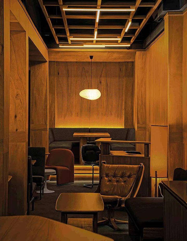 To get an idea of how a Mid-century Modern aesthetic can effectively bring together seemingly disparate elements in a space, look no further than the Jigger & Pony group’s Live Twice, a bar inspired by the cocktail scene in 1960s Ginza, Tokyo. Envisioned by local firm Hui Designs, the bar features an eclectic mix of vintage furniture from that era – from Saarinen’s sculptural, vividly-coloured Tulip stools to austere, but preternaturally comfortable Falcon armchairs from Norwegian designer Sigurd Ressell – that all blend in seamlessly with the space, which has been given a distinctive Japanese flair with wooden panel-lined walled and a Washi paper screen.
