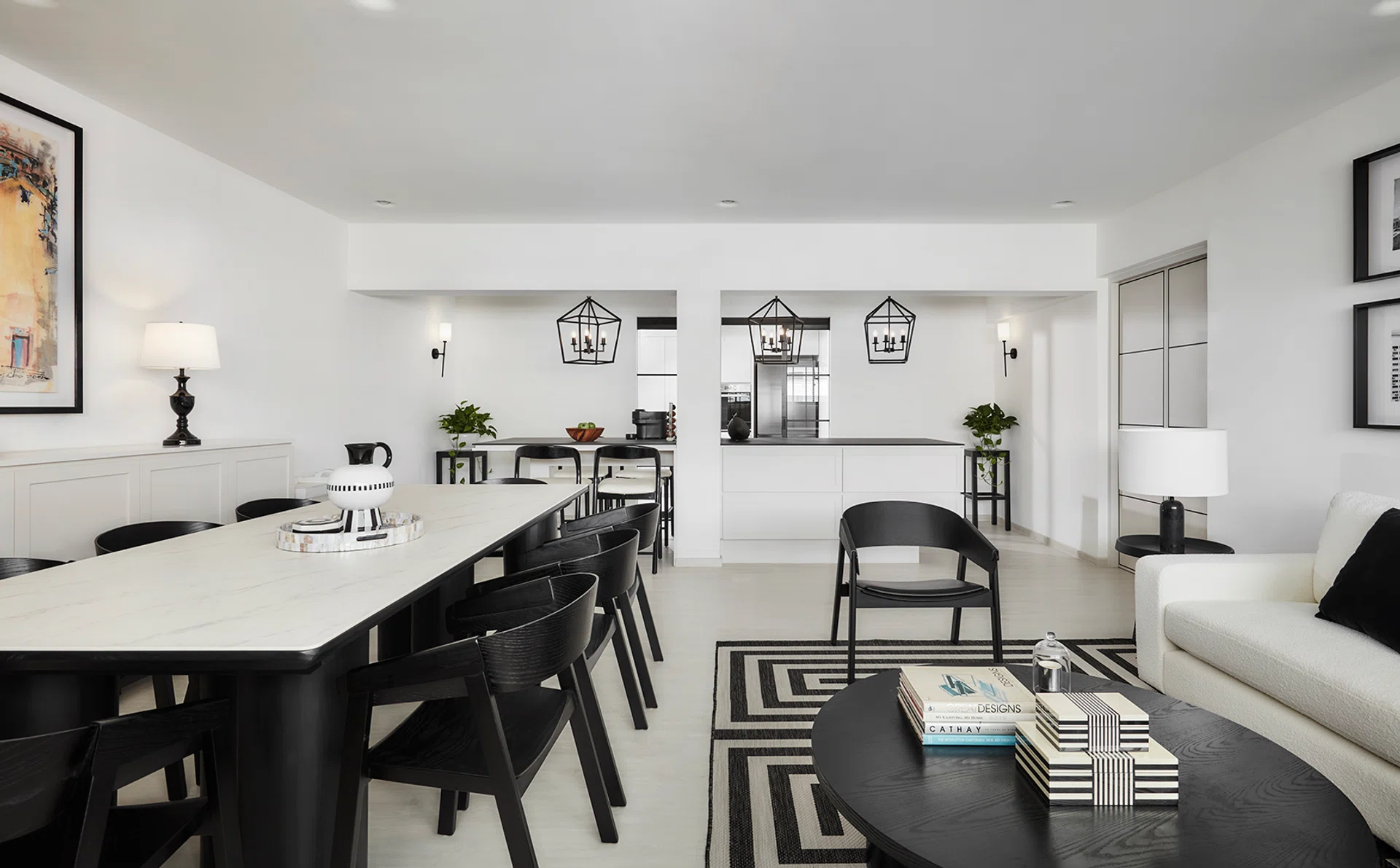 For Daniel Yun, the celebrated film producer and life coach, black-and-white isn’t just a colour scheme—it’s a philosophy. “In filmmaking, we start with a white canvas, and at the end, it fades into black,” he muses, drawing a poetic parallel between his craft and his home’s aesthetic. This monochromatic love letter comes to life in his meticulously renovated 40-year-old flat, transformed with the expertise of design director Adrian Heng from Spaceone ID Consultancy and contractor Stack Studio.