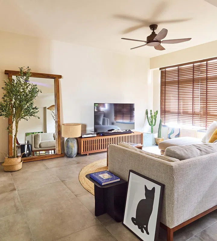 House Tour: Neutral, earthy 4-room BTO in Tampines for a young couple & cat