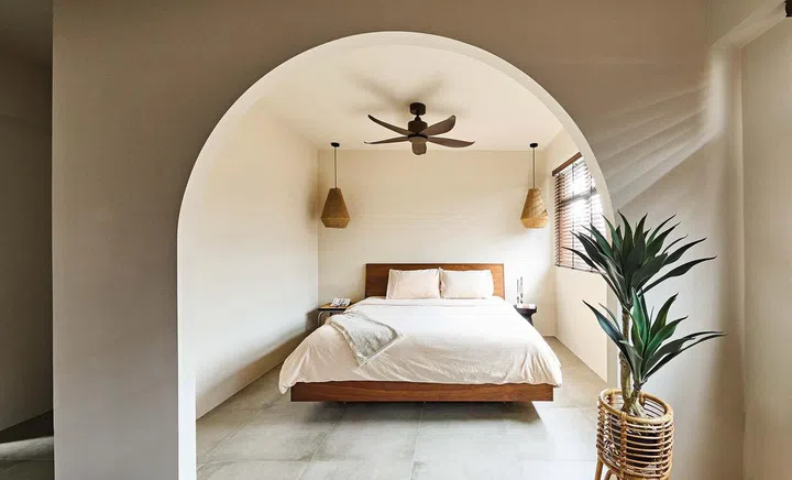 With the integration of the existing master bedroom and the bedroom next to it, JT configured the layout such that it is now a master suite with a separate sleeping area that Nigel likens to a “cave”, which is entered through an arch that the couple specifically wanted.