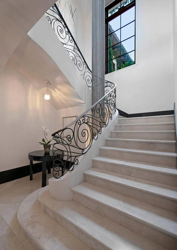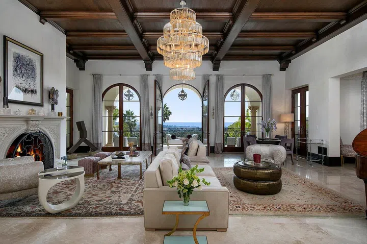 Fit for royalty, the Mediterranean-style, six-bedroom home with 13,599 square feet includes ocean and mountain views, multiple terraces, and a regal great room chandelier and arched windows – where Meghan was extensively filmed for the show’s interviews. The home was built in 2006.