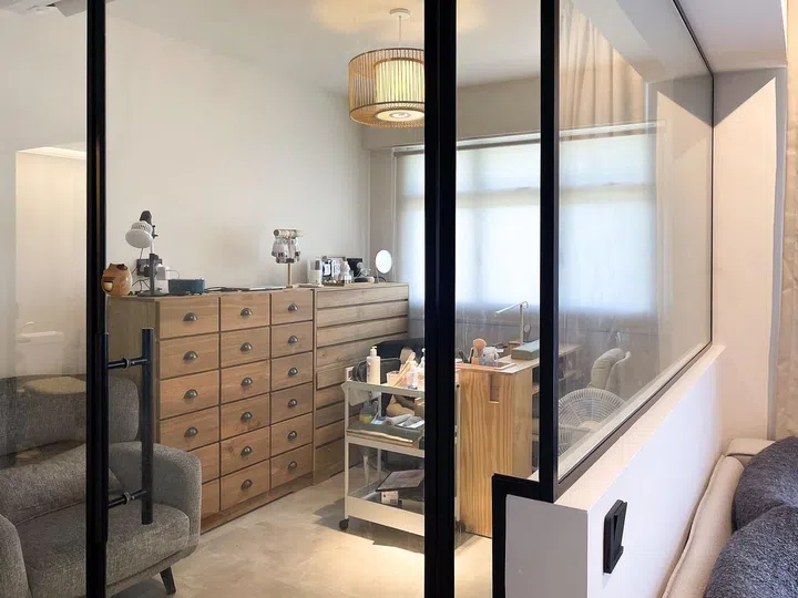 The homeowner of this cosy nest also uses the space for her home-based nail salon business. Some customers might be apprehensive about visiting home-based salons, and that's why this homeower decided to go the extra mile for her clients by creating an utterly comforting zone so they wouldn't feel uneasy when dropping in for their manicure. Scroll to find out why we think this project's worthy of being our SG:ID Seen of the day.