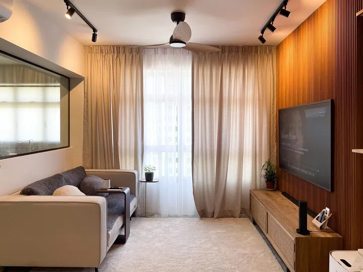Gentle earth tones greet you as soon as you enter the home, which evokes a really soothing atmosphere. The ID team paid extra attention when coming to the selection of the colours for the walls and curtains, ensuring they complement each other perfectly. That's something to take note of when renovating your space, because various hues within the same colour can complement or contrast each other in terms of its warmth/coolness. When in doubt, try to get swatches and put them together into a mood board to ensure the outcome is what you envisioned.