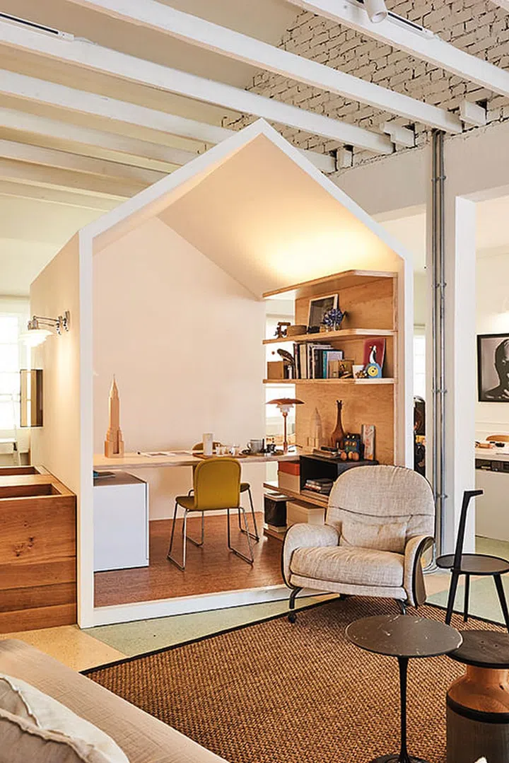 Now, it is a cosy corner that accommodates more intimate discussions away from the work desk, as well as a display area for accessories and books.