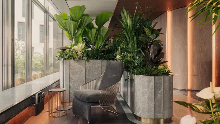 Spread over four floors of the building, levels seven and eight offer an immersive, lush and thriving indoor conservatory for high net-worth banking clients, while levels six and nine provide a conducive working environment for its relationship managers and wealth specialists.