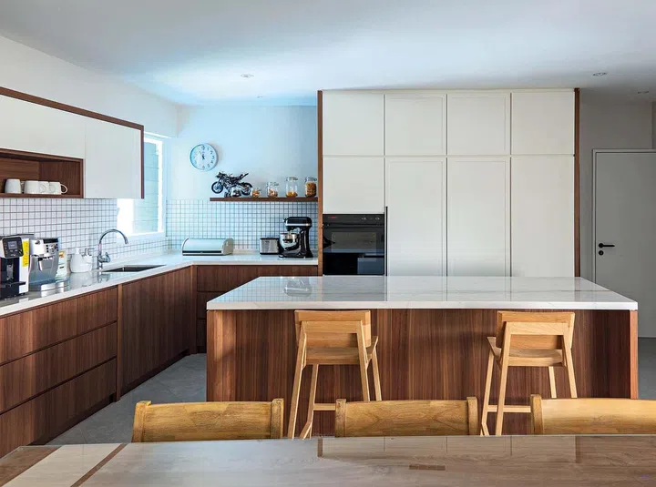 The structural beams of a flat play a crucial role in shaping the interior space. Reconciling the spatial requirements with the flats existing beams was the biggest challenge in designing the home, according to Shermaine.