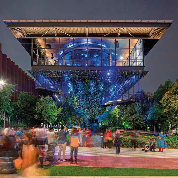 The Singapore Pavilion, located in the Sustainability District, is a demonstration of how the built environment can harmoniously co-exist with nature. Despite having one of the smallest plots in the Expo, the pavilion makes a stunning visual statement, mirroring Singapore’s own success in overcoming size limitations.