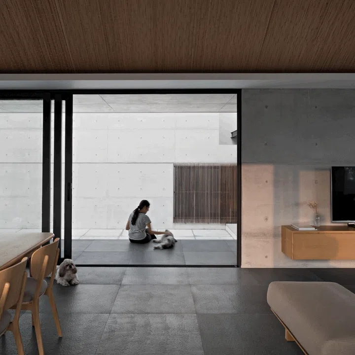 The breathability of the house has been designed both for the wellness and ease-of-maintenance. The natural ventilation eliminates the need for air conditioning. The expansive windows feature a hidden gutter that conceals blinds, which can be pulled out when privacy is wanted.