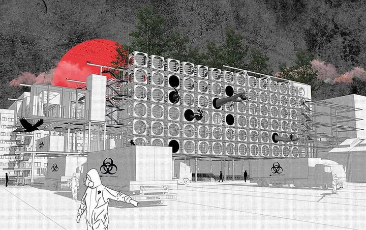 A rendering of the crematorium from the outside.