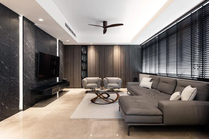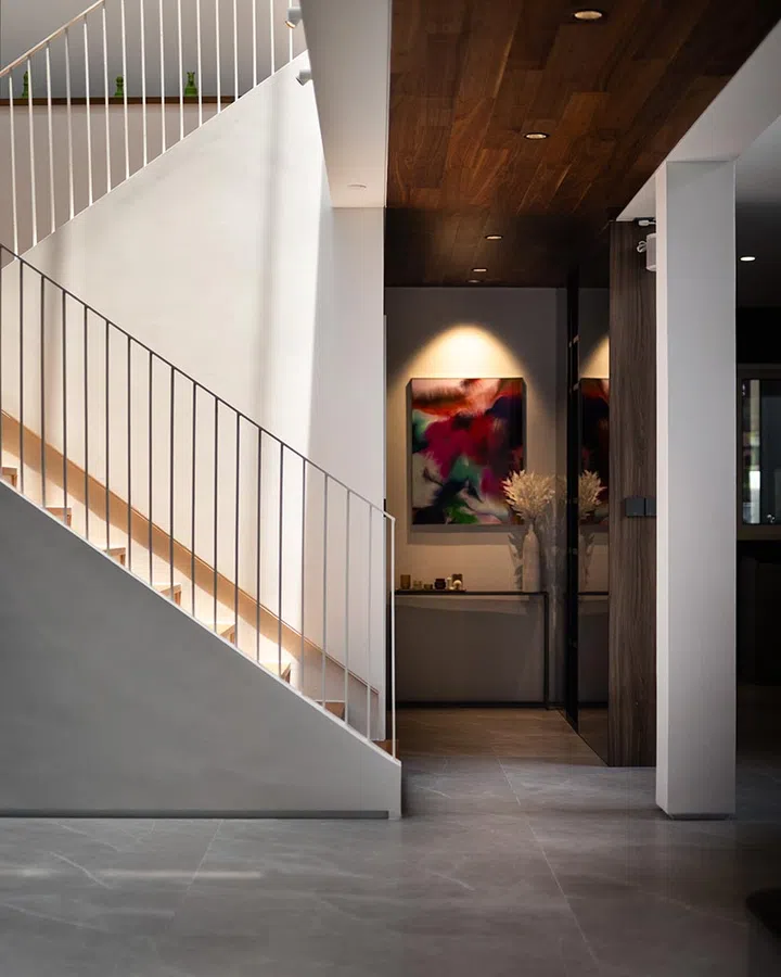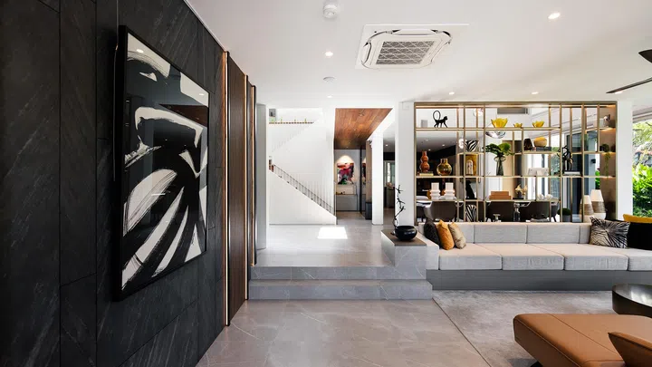 Designed as a multi-generational home, this project showcases M Atelier’s versatility and attention to detail. Accommodating the couple, their two teenagers, and the elderly mother, M Atelier crafted a layout that balances style with functionality. A wheelchair-accessible ramp at the entrance exemplifies their foresight in accessibility, while the interior’s mixed palette of whites, blacks, and warm woodgrains is thoughtfully contrasted with bright accents and natural stone patterns. The result is a dynamic, visually engaging space that meets the needs of each generation, illustrating M Atelier’s ability to combine aesthetics, practicality, and inclusivity in a seamless, sophisticated design.