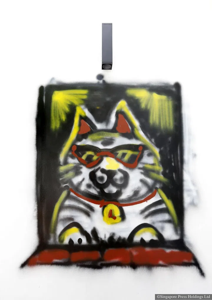 Mr Ong Xi Bin, who calls himself a ‘semi-professional struggling artist’, has a spray painted portrait of a cat on his balcony wall at his unit in a pre-war shophouse on Crane Road, just off Haig Road.