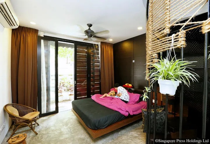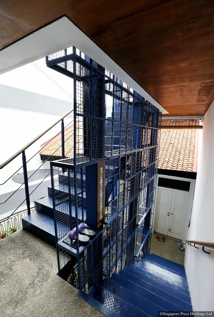 The home is actually two shophouses combined to make a larger home of six self-contained units. It is the brainchild of Ong Chin Hwee, a Singaporean who works in his family shipping business and also happens to live in the same neighbourhood. Mr Ong reveals that when he and his family bought the first house several years ago, the plan was to create a family home where his two other siblings and their parents could live together. “My parents would have liked that,” he adds. When the neighbouring house came up for sale, Mr Ong decided to buy that too and create an even bigger house. Under building guidelines, the two-storey shophouses could have four-storey extensions at the back. So with the help of Ong & Ong Architects, the rear extension was built.