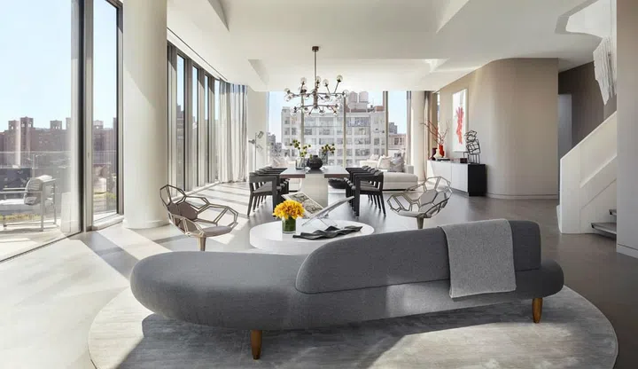 This penthouse occupies the top three floors of the 11-storey condominium. It is listed for $50 million, making it the most expensive of the 39 condos inside the block. And look at that view of the famous High Line Park!