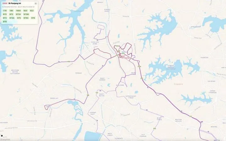Feeder bus services: In this example, there are a few bus routes (922, 972, 976) from Bukit Panjang Interchange.